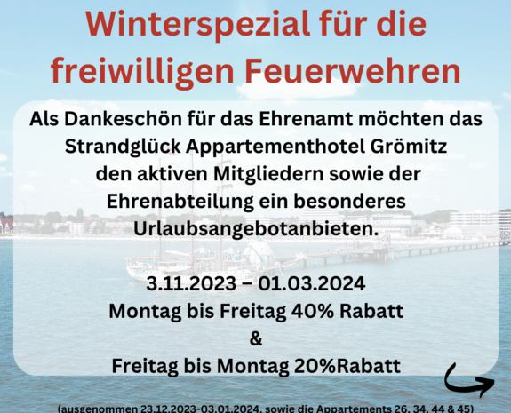 Als Dankeschön für das Ehrenamt möchten das Strandglück Appartementhotel Grömitz den aktiven Mitgliedern sowie der Ehrenabteilung ein besonderes…
